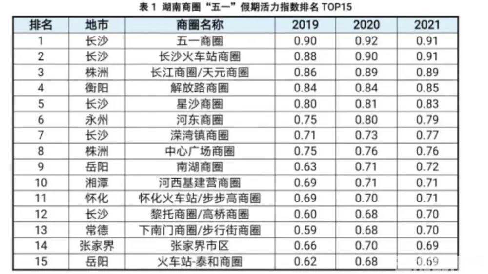 商圈电量活力指数显示,长沙携4个商圈入围全省商圈活力榜前十,“五一”商圈稳居榜首,长沙火车站商圈与星沙商圈紧随其后。